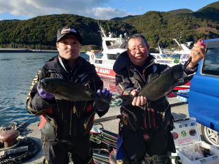 | 12月20日 尾家 豊治さん(右) 口太48cmと45cm! 内永 知宏さん(左) 尾長43cmです! |